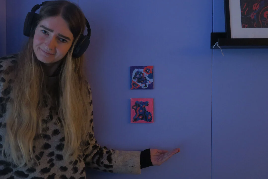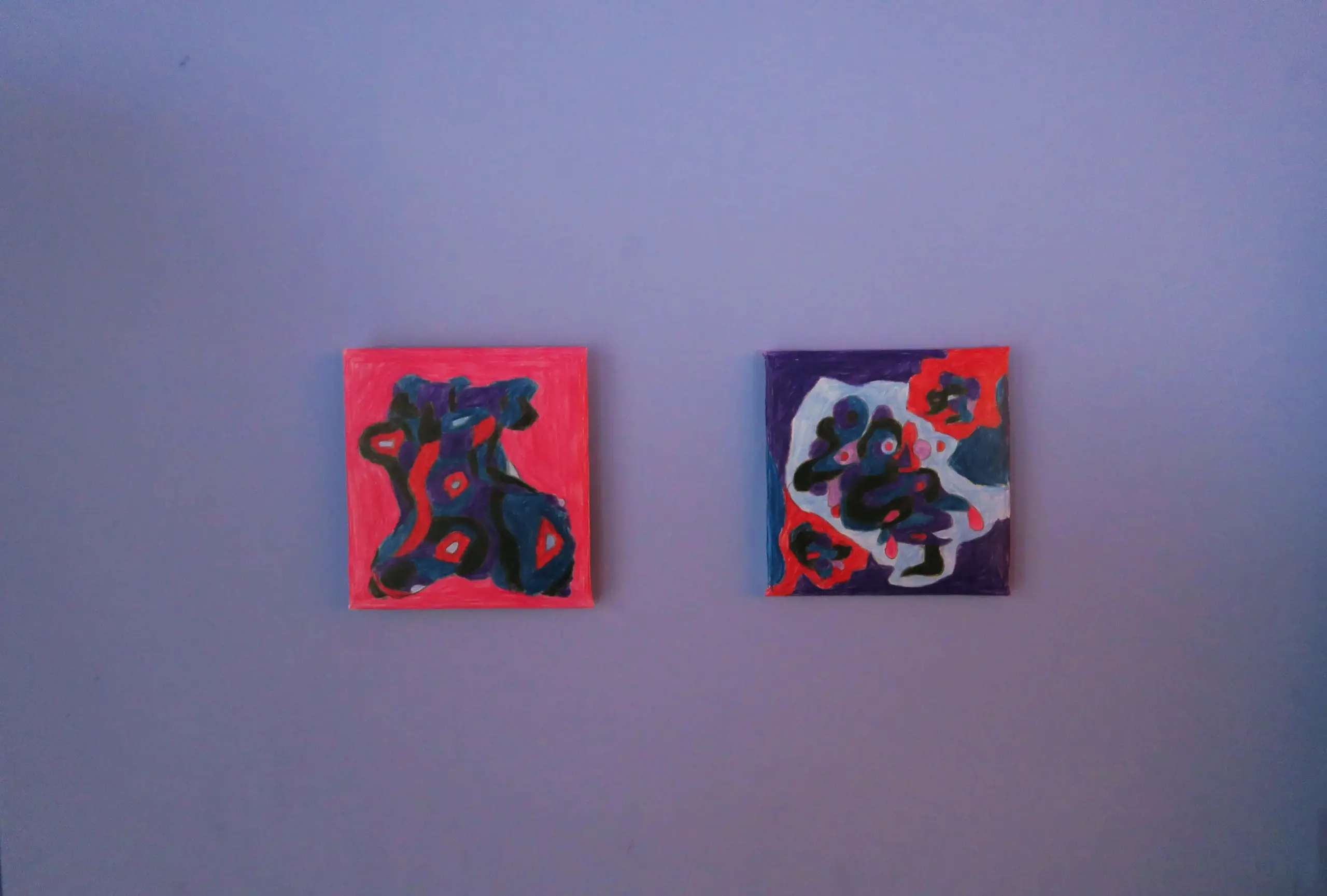 There’s something magical about watching a blank canvas turn into a little universe of its own. This piece came together through instinct—layers of deep purples, bursts of red, soft blues, and organic shapes that seemed to grow on their own. I didn’t plan anything; I just followed the colors and let them collide, overlap, and settle into something that feels alive.